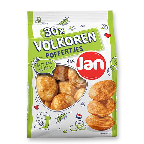 Daarom bakt Jan z’n pannenkoeken op ambachtelijke wijze, precies zoals z’n moeder dat deed. Met Jan zet je altijd snel iets lekkers op tafel, waaronder deze Volkoren Poffertjes. Ze zijn ook nog rijk aan vezels!